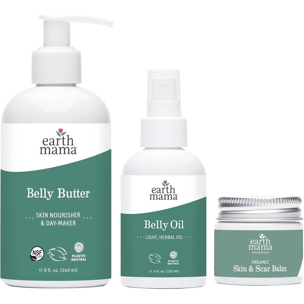 Earth Mama Belly Butter, Belly Oil, Skin & Scar Balm Kit for Dry, Stretching Skin | Moisturize + Encourage Skin’s Natural Elasticity During Pregnancy | Pregnancy Stretch Mark Scar Cream